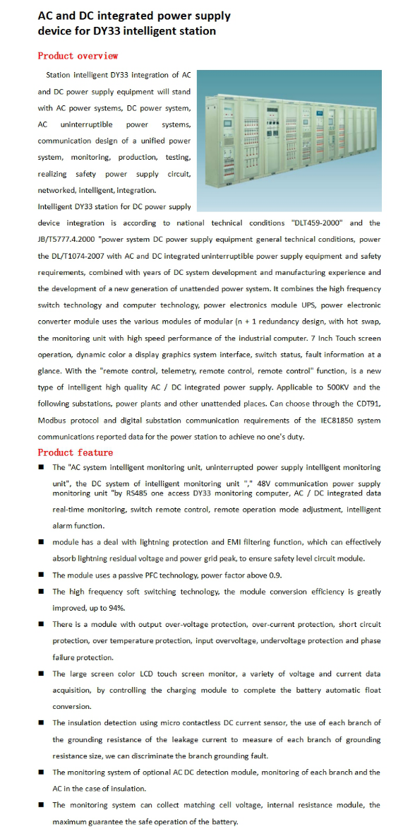 AC and DC integrated power supply device for DY33 intelligent station